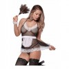 Issu de la collection Dress Up de Magic Silk, ce costume comprend une robe à bretelles qui s'attache au cou, avec une finition en dentelle contrastée et un tablier sur le devant. Il comprend des rubans en satin autour de la taille, des nœuds en dentelle dans le dos, des poignets en dentelle coulissants et un string assorti. Il offre un ajustement confortable et est fabriqué à partir de matériaux et de tissus de haute qualité qui soulignent les contours du corps.