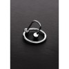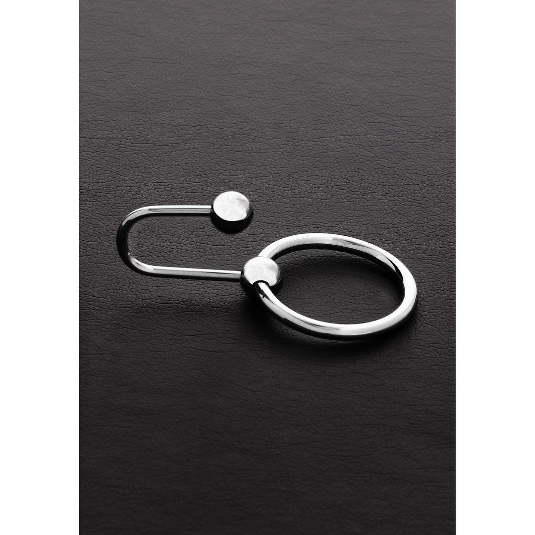 Steel urethral plug with 2.8 cm ring and articulated hook for intense urethral stimulation.