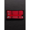 The Rosebud Sounds are very unique and highly effective in urethral stimulation/sounding. Due to their unique shape, the tips cause a highly sensitive feeling as they slip in and out, resulting in a pleasure overload. The set comes with eight different sounds all 30cm long (approx. 12). The fine steel shafts are then topped with a rosebud or bullet shaped tip, which come in variety of sizes ranging from 0,4-1,2cm wide and 1-2,5cm long. The sounds comes in a practical leather, velvet-lined case.
