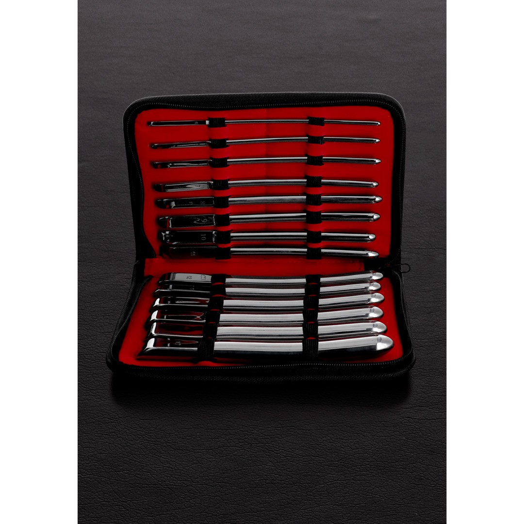 Set of stainless steel urethral probes, 14 graduated pieces, for safe and comfortable use.