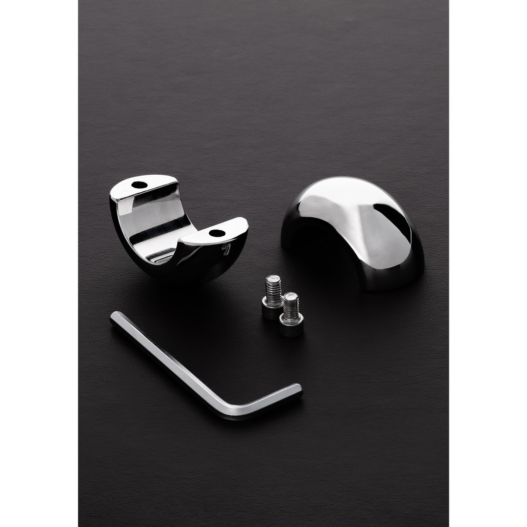 Oval stainless steel testicle extender, 4,1 cm long, with Allen key lock for intense and safe pleasure.
