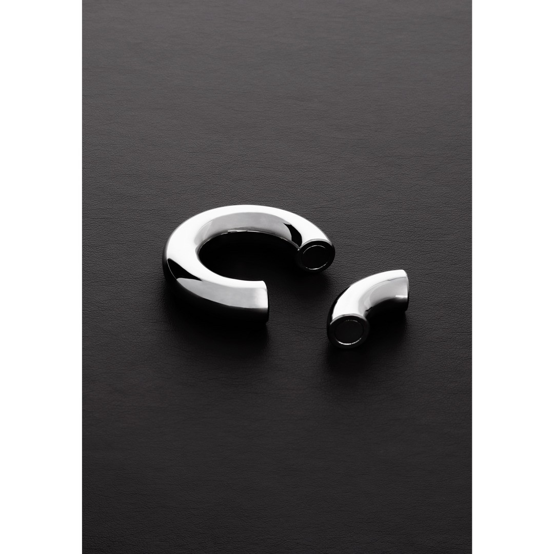Magnetic stainless steel testicle stretcher ring, 3.6 cm in diameter, with a secure fit without tools.