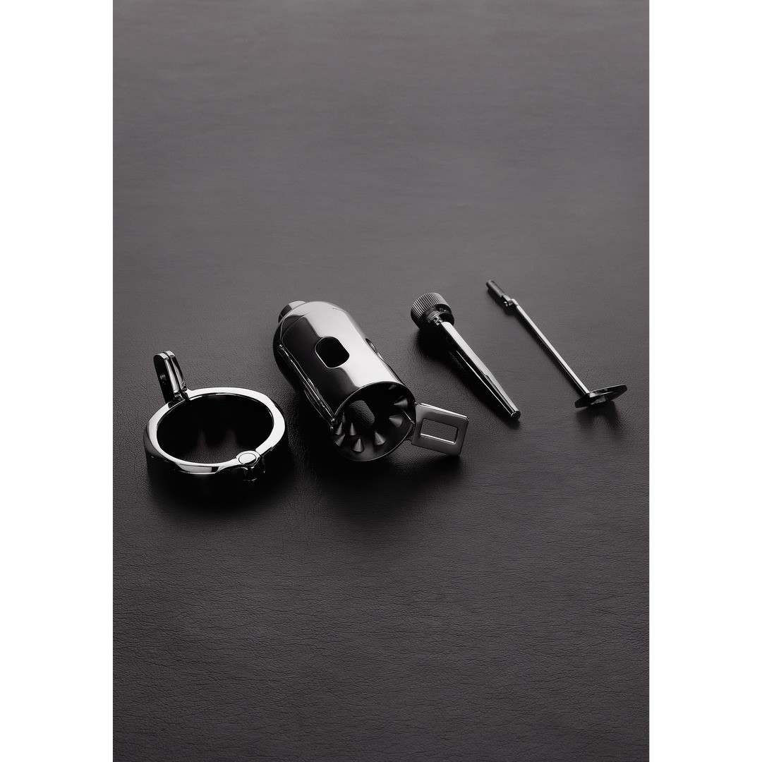 It also includes a removable 7 mm urethral tube with a hole for urination. The tube is lockable and cannot be removed without the key.