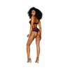 3-piece set in soft lace, mesh and removable gold chains. The high-neck, lace and mesh bra without underwire features a keyhole opening at the front with removable gold chains, adjustable straps and a hook-and-eye fastening. The high-waisted garter belt has adjustable garters and removable chains. Includes matching lace thong.