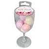 A set of wine-scented bath bombs, presented in an elegant hard plastic wine glass.