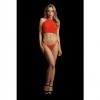 Be the centre of attention with this stunning set, covered in glitter and rhinestones. The halterneck top and thong with cut-outs at the crotch take sensuality to a whole new level. This sensual set, ideal for sizes S to XL, combines comfort and boldness in equal measure. Feel like a true Christmas miracle with this irresistible piece.