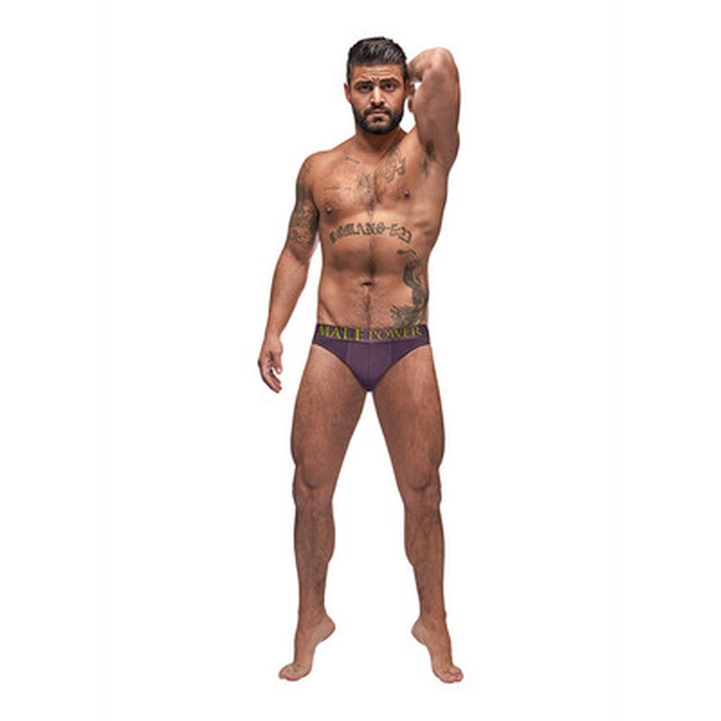 From Male Power's Avant-Garde collection, this style features a jockstrap-style brief with a reinforced support pouch, cut-out back, silky luxurious finish, and an innovative waistband with collage text and brand logo. Crafted from super-stylish microfibre, it offers cool, breathable comfort with a soft feel and a standout look.