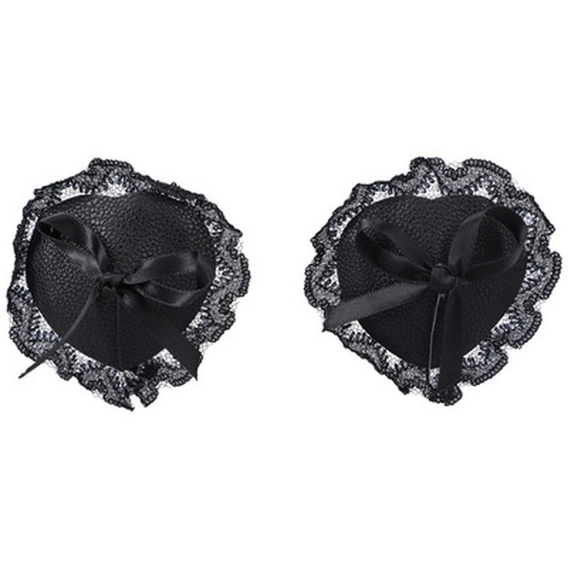 Cover only the essentials with these sensual black vegan leather and lace nipple covers.