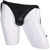 This comfortable black vegan leather harness is lined with a thin, breathable material. A simple hole in the front allows for easy use with the included thin silicone dildo.
