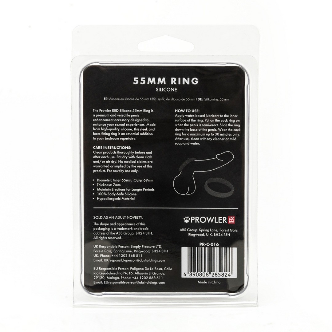 The Prowler RED 55 mm silicone cock ring is a luxurious and versatile penis accessory designed to enhance your sexual experiences. Made from high-quality silicone, this stylish and adjustable ring is an essential addition to your bedroom repertoire. Its 55 mm (5.5 cm) inner diameter provides a comfortable fit for most users, offering just the right amount of constriction to enhance performance and pleasure. Part of the Prowler RED collection, you can expect intense sensations with this sexual stimulator. The silicone is body-safe, hypoallergenic and easy to clean. Whether you want to prolong erections, intensify sensations or explore new experiences, the fifty-five millimetre (5.5 cm) Prowler RED silicone ring does the job with excellence. Discreet, easy to use and suitable for both beginners and experienced users.