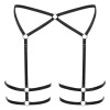 It is made of soft, silky and shiny elastic straps, combined with silver connecting rings. The garter straps at the front and back, as well as the double straps for the thighs, are adjustable for a perfect fit.