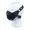 Leather mask designed to conceal half of the face, creating a discreet and provocative visual effect.