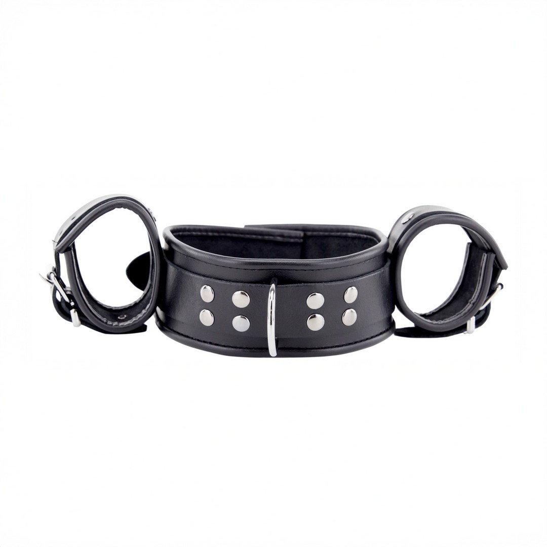 Leather collar with cuffs designed to combine control, comfort and elegance in a single accessory.