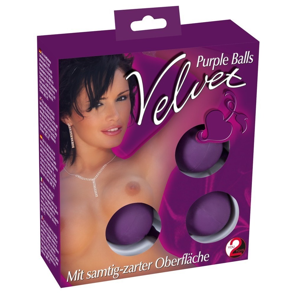 Trío de bolas chinas moradas con bolas vibradoras interiores y cordón de extracción.