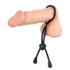 El lazo negro para el pene está dividido en dos por una perla transparente, lo que permite colocarlo alrededor del pene y los testículos. Incluye un cursor móvil para ajustar el diámetro individualmente al tamaño del pene. De este modo, la intensidad del efecto de restricción del flujo sanguíneo se puede regular según las preferencias personales. Ajuste perfecto, uso cómodo y erecciones firmes, ¡todo en un solo producto!
