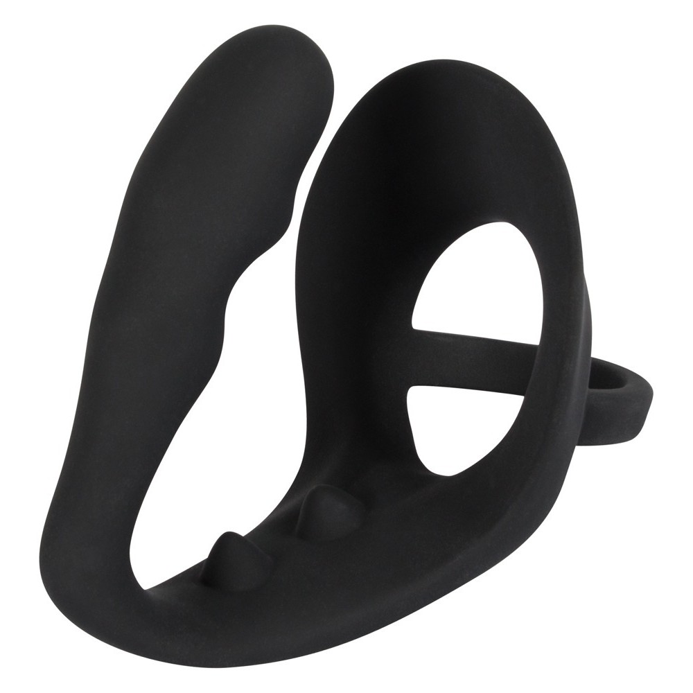 Este anillo para el pene negro combina un plug anal adicional con un puente perineal estimulante, ofreciendo placer en múltiples puntos. ¡Puro éxtasis garantizado!