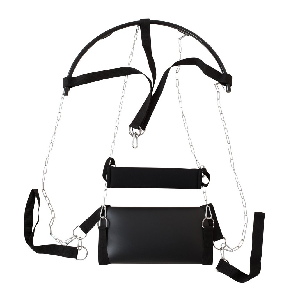 Columpio con asiento acolchado, fácil de fijar mediante cuerdas resistentes. Incluye una correa acolchada extraíble que sirve de respaldo para mayor comodidad. Ideal para posiciones como el misionero o el perrito. No incluye accesorios de montaje.