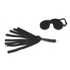 Incluye: un látigo de 38 cm de largo con 8 colas y mango de cuero, un antifaz y accesorios de montaje.