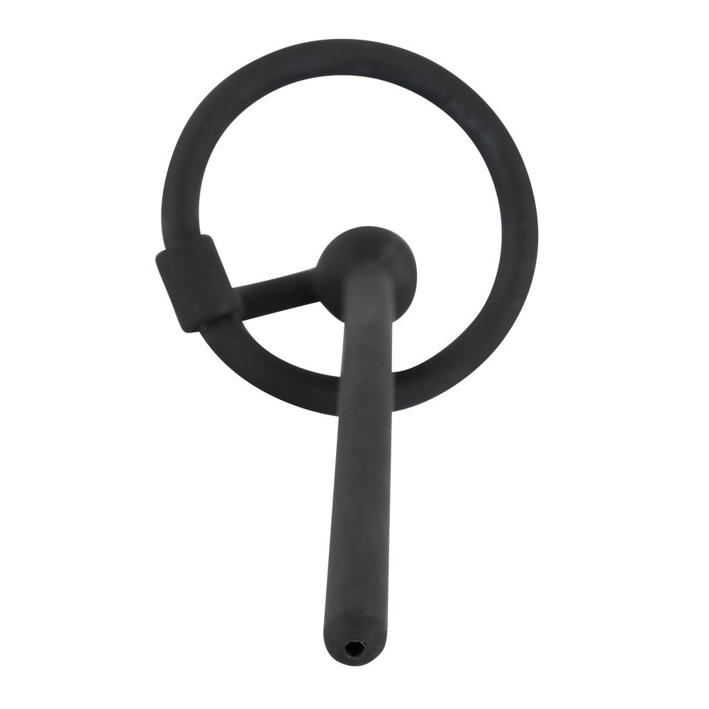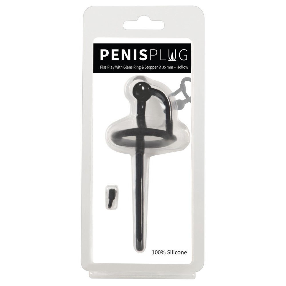 Plug uretral hueco con anillo móvil para el glande y tapón extraíble.