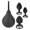 3 x plugs anales en diferentes tamaños para estiramiento y entrenamiento. Cada plug tiene una joya en la base, perfecta para decorar la puerta trasera.