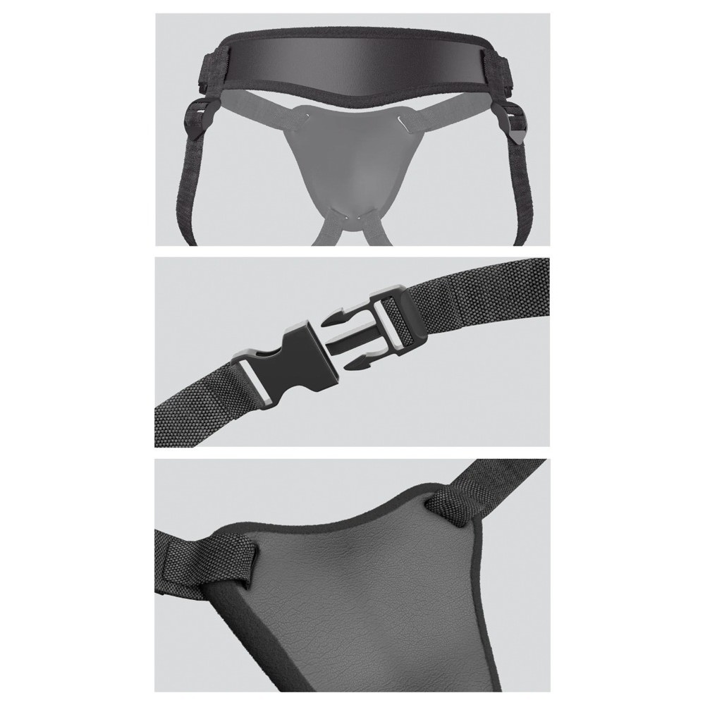 Este sencillo sistema strap-on se basa en una placa de acoplamiento anatómicamente curvada, a la que se puede fijar cualquier vibrador o dildo con ventosa (no incluido). El dildo o vibrador se mantiene perfectamente en la posición ideal para los movimientos de empuje (Push & Play).
