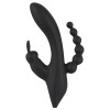 Vibrador con estimulador clitoriano en forma de conejo y estimulador anal con diseño de perlas anales. Dispone de siete modos de vibración en el eje curvo, con punta para la estimulación del punto G, y tres modos de vibración en el estimulador clitoriano.