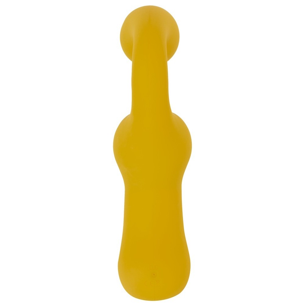 Vibrador amarillo dinámico que masajea intensamente la vagina con su cuello curvo y flexible y su cabeza saliente, mientras estimula el clítoris con excitantes vibraciones. Los dos motores con 10 modos de vibración proporcionan una gran variedad de sensaciones y se pueden ajustar fácilmente con solo pulsar un botón. La persona que utiliza el vibrador también puede cambiar los modos de forma muy sencilla. La textura suave y aterciopelada es agradable al contacto con la piel durante la estimulación y el placer. Se puede recargar con el cable USB incluido.