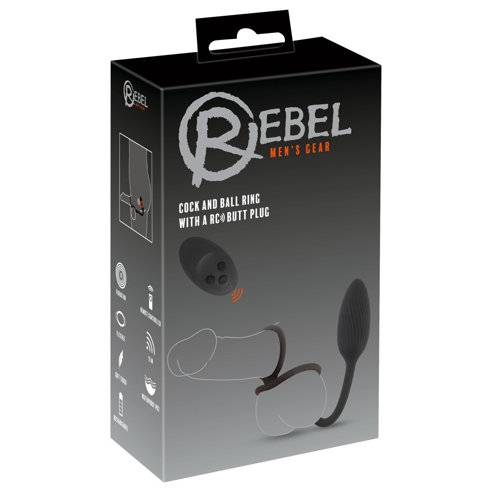 El Cock and Ball Ring con RC Butt Plug de Rebel combina un anillo para el pene y los testículos con un plug anal vibrador, controlable mediante mando a distancia. Gracias a su alcance de 15 metros, el control puede ser asumido por una pareja para una experiencia aún más excitante.