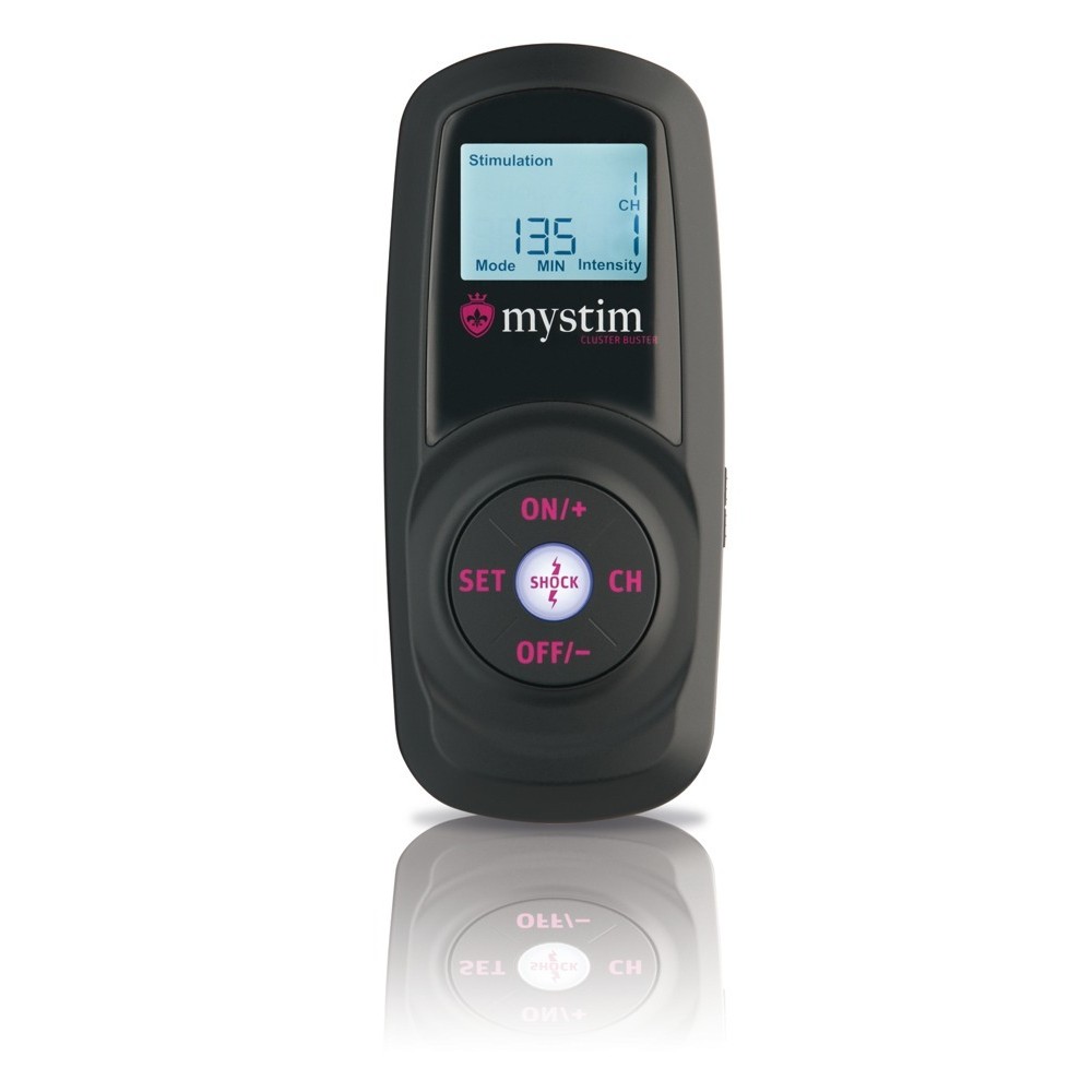 El mystim Cluster Buster viene en una bonita caja de almacenamiento. La entrega incluye un mando a distancia, un receptor, un electrodo bipolar (autoadhesivo) y un manual de instrucciones. La batería de iones de litio se puede recargar con el cable incluido.