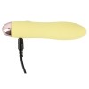 Mini vibrador amarillo con un diseño fino y elegante. Cuenta con 7 modos de vibración y es recargable mediante el cable USB incluido. Fácil de usar y totalmente resistente al agua, es ideal para momentos de placer discretos e intensos.