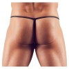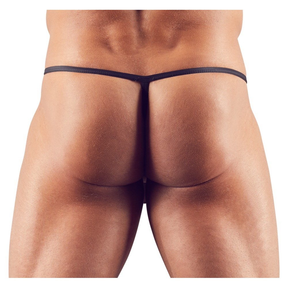 Tanga negra con anillo para el pene extraíble (cierre a presión) (diámetro 5 cm). La tanga es de microfibra suave y cuenta con tiras finas y elásticas, recubiertas de un material sensual.