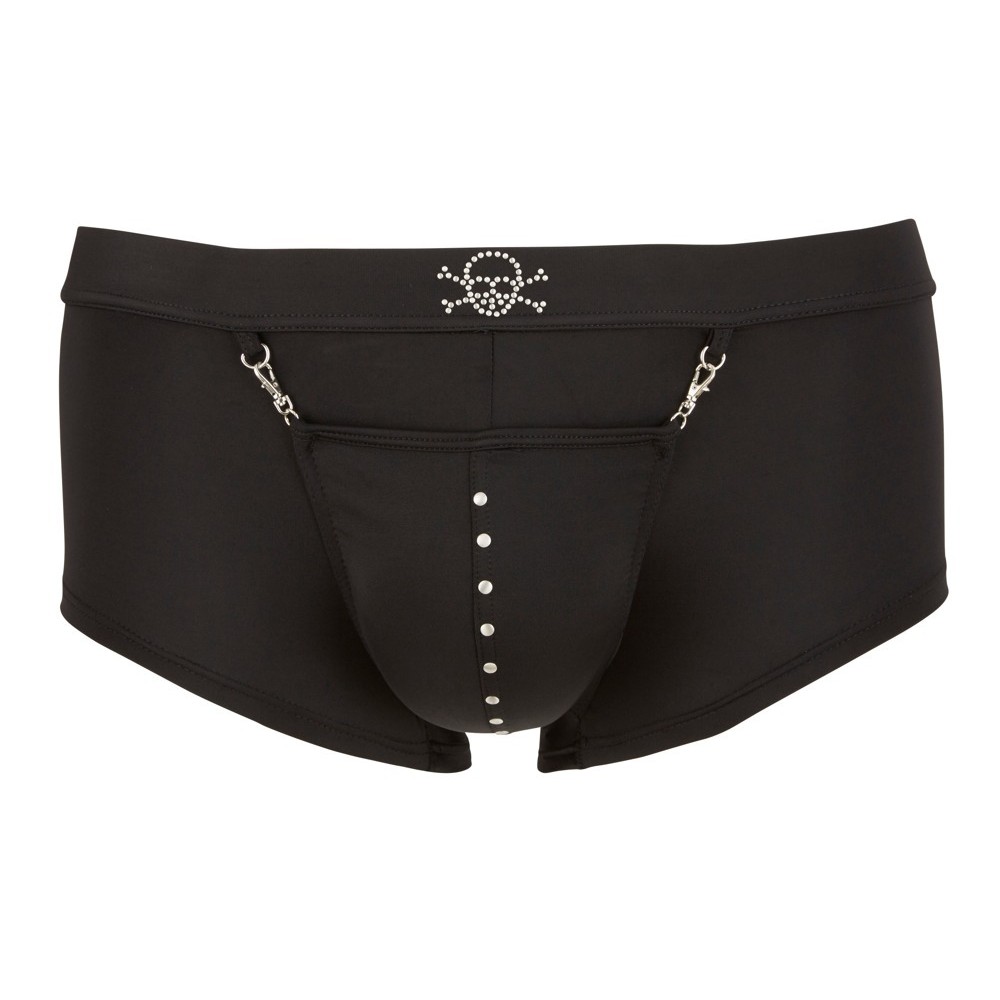Boxers de estilo pirata que realzan la silueta, con bolsa con botones a presión y abertura frontal. Con efecto de volumen para un look llamativo y detalle de calavera en la cintura con tachuelas, perfectos para aventuras atrevidas y juegos de fantasía.