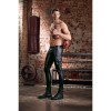 Pantalones elegantes de corte ajustado con acabado mate, bolsillo lateral grande, tiras cosidas, remaches y anillas. Ligeramente elásticos, lo que proporciona una comodidad extrema. La cremallera plateada en la parte delantera completa el estilo rock & roll.