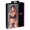 Sujetador con tirantes ajustables y cierre de corchetes en la parte delantera. Incluye tanga a juego. Ambas piezas están confeccionadas en encaje floral suave y elástico, lo que proporciona comodidad y elegancia.
