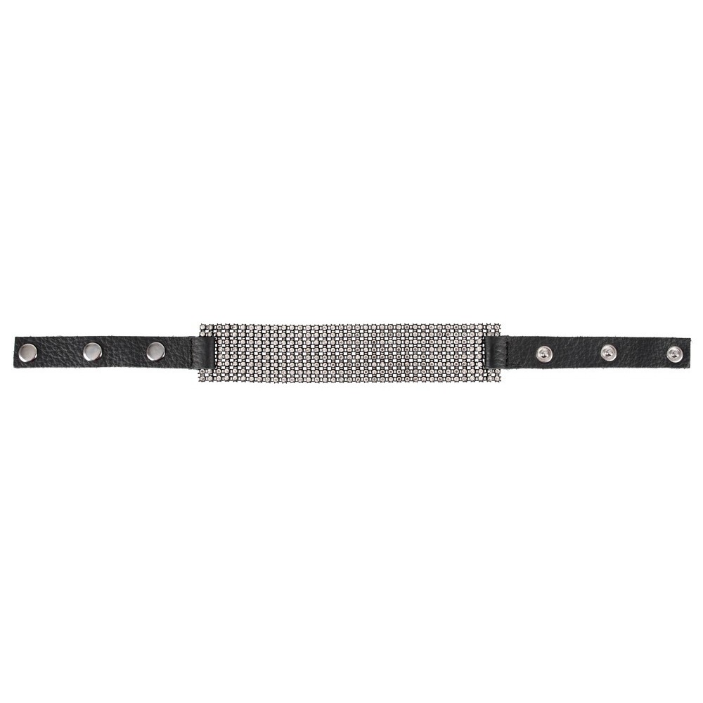 Esta gargantilla tipo choker presenta una parte frontal ancha totalmente adornada con pedrería, lo que crea un efecto elegante y seductor. Las tiras se ajustan fácilmente gracias a los botones a presión, lo que garantiza un ajuste cómodo y seguro.