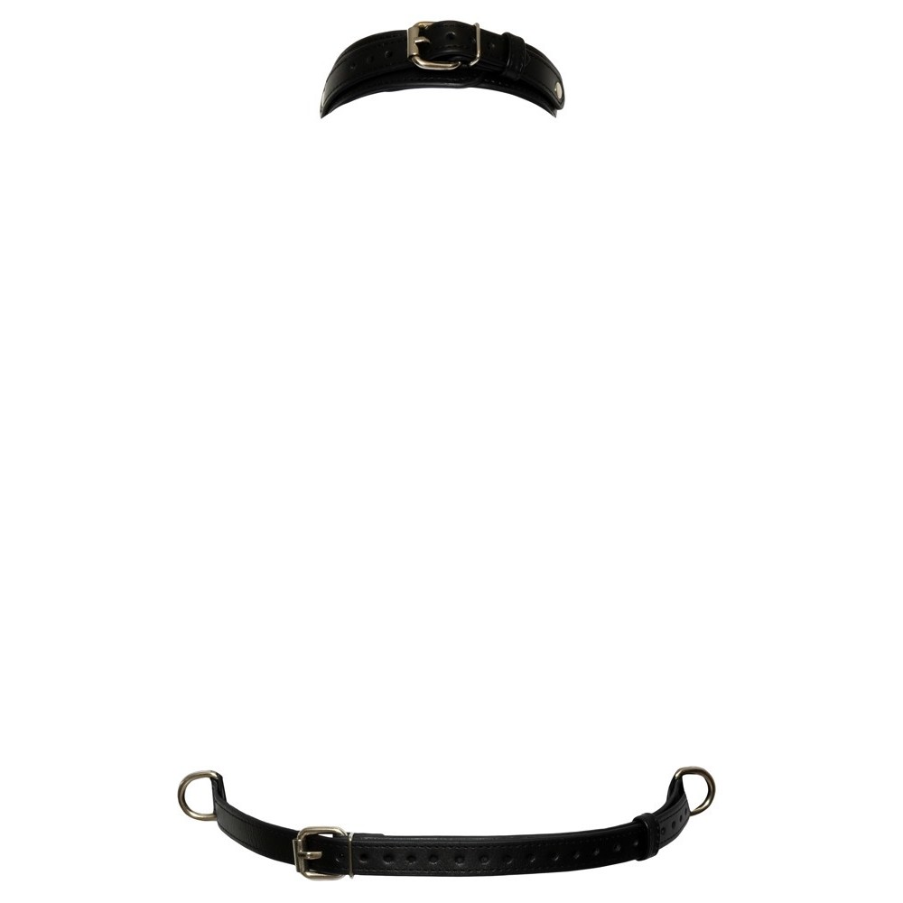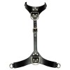 Arnés de torso para mujer de Bad Kitty con un elegante acabado en piel negra y detalles metálicos plateados. De excelente calidad, es totalmente ajustable gracias a sus múltiples hebillas. El collar y la correa pectoral incluyen anillas en D resistentes y decorativas, ideales para fijar otros accesorios y explorar nuevas posibilidades.