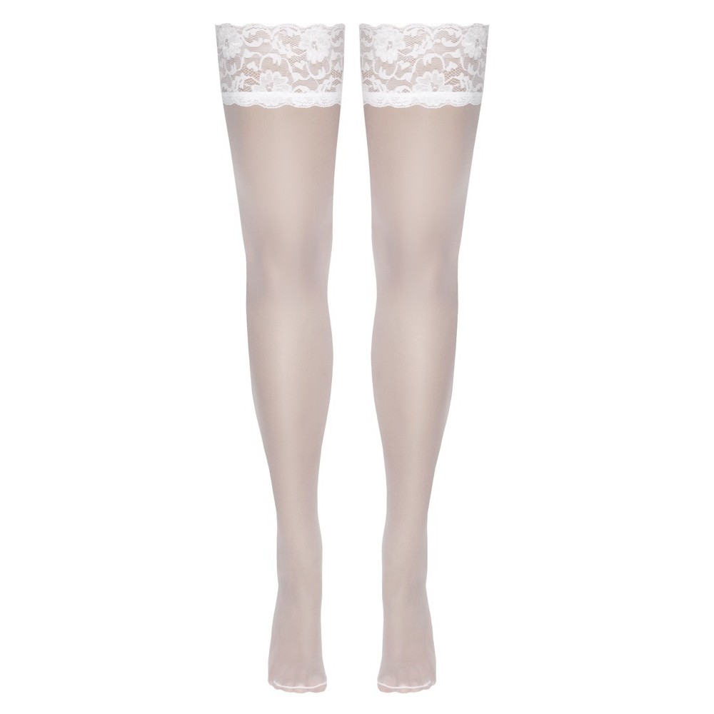 Medias de liguero blancas de Cottelli LEGWARE con un elegante ribete de encaje de 9 cm de ancho. Interior con refuerzo de silicona para un ajuste antideslizante y una sujeción óptima. Grosor de 20 den. Certificación Oeko-Tex. Los encajes están sujetos a cambios.