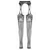 Medias con un elegante diseño de liguero. Confeccionadas en delicado tejido de rejilla con un estampado floral cosido. Estas atractivas medias con efecto liguero son tan cómodas como las medias normales. Un auténtico imprescindible para momentos sensuales de placer.