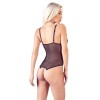 Body sin entrepierna absolutamente deslumbrante, con aberturas en las copas y estimulantes filas de perlas en la zona de la entrepierna. Confeccionado en powernet semitransparente combinado con encaje floral. Los tirantes son ajustables para garantizar un ajuste perfecto.