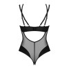 Body Nesari negro sin entrepierna de Obsessive, confeccionado en tejido elástico fino con detalles opacos. Suave y flexible en todo el cuerpo, proporciona una gran comodidad. El sujetador presenta un elemento decorativo entre las copas y un cierre de gancho ajustable en la parte inferior de la espalda. Los tirantes cruzados dobles son ajustables para un ajuste perfecto. La entrepierna, con dos tiras de cordón, queda seductoramente al descubierto.