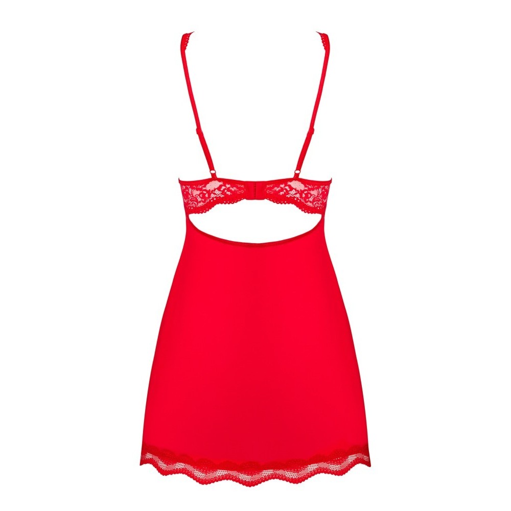 Picardías Luvae en rojo, creado para realzar la sensualidad con elegancia. El sujetador suave con aros realza el busto, mientras que la espalda descubierta añade un toque provocativo. Los tirantes decorativos y ajustables garantizan la comodidad, y una elegante perla en los pechos añade un encanto extra. El cierre ajustable y el sensual corte en la espalda completan el diseño. Incluye tanga a juego. Materiales suaves y delicados para un tacto agradable.