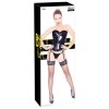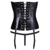 El corsé está hecho de vinilo negro brillante, es sensual y ajustado, y tiene detalles seductores y tiras extraíbles.
