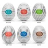 Caja de 6 masturbadores compactos y desechables en el Variety Pack New Standard de TENGA, cada uno con una textura estimulante diferente en su interior: Wave II, Boxy, Brush, Tornado, Sphere y Silky II. Las fundas, muy flexibles, vienen en envases con forma de huevo e incluyen lubricante para su uso inmediato.