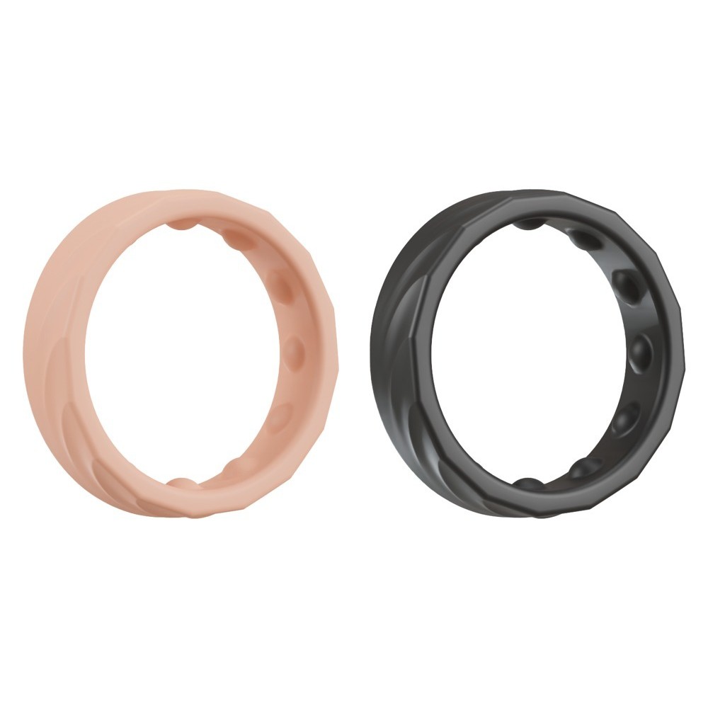 Fabricados en silicona con acabado Soft Touch, los dos anillos flexibles son fáciles de colocar y quitar, ofreciendo comodidad y placer. La textura exterior ondulada garantiza una estimulación extra, mientras que las protuberancias internas aseguran un ajuste firme y seguro. Se pueden usar individualmente o en combinación, adaptándose a cualquier forma de pene o testículos.
