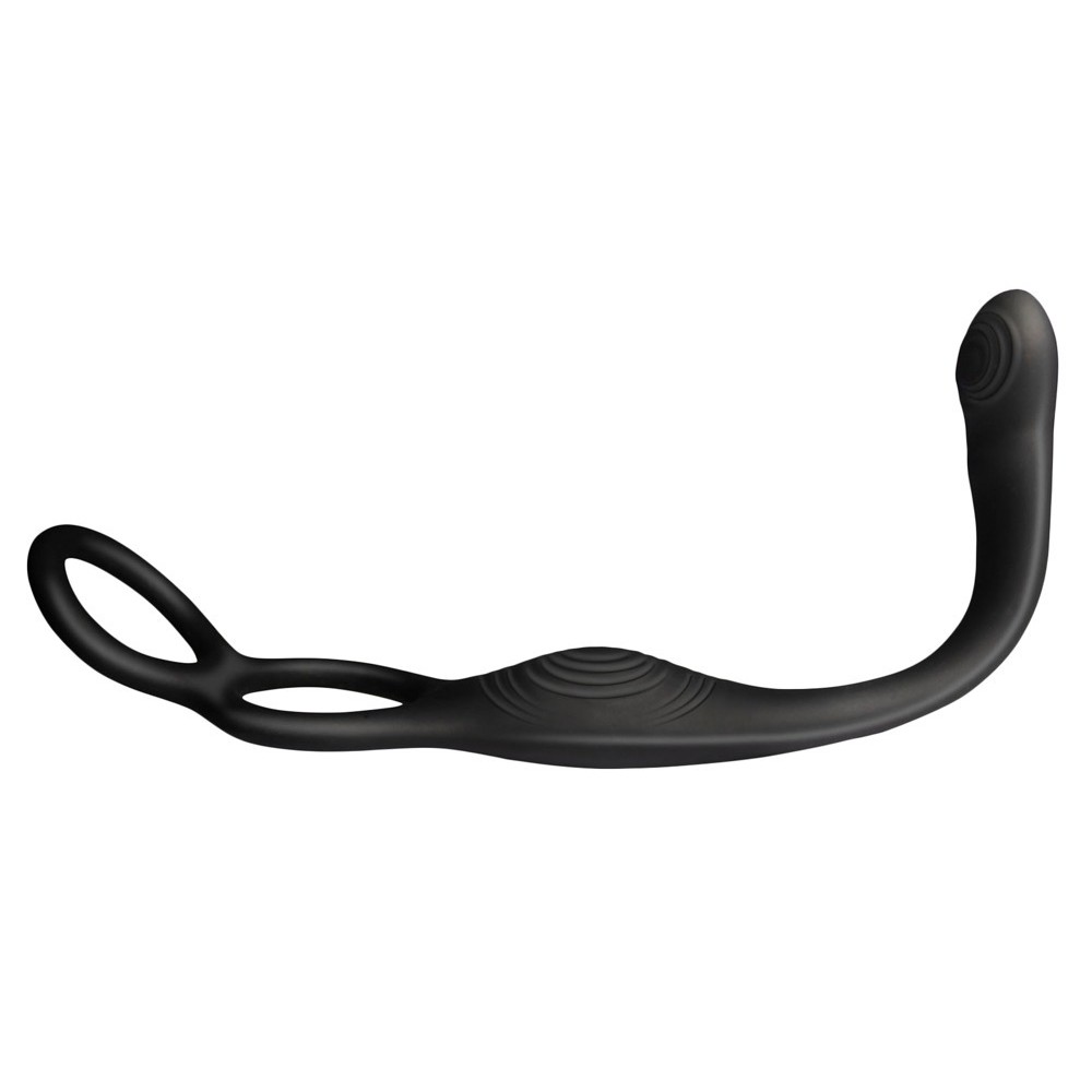 El estimulador de próstata y los anillos flexibles de apoyo a la erección están conectados por una barra vibratoria de estimulación del perineo, que evita que el estimulador se deslice demasiado hacia dentro y lo mantiene en la posición ideal. Se puede usar durante largos periodos de tiempo, incluso de forma discreta bajo la ropa. El revestimiento de silicona aterciopelada y suave proporciona una sensación suave y agradable, mientras que los puntos texturizados intensifican la estimulación.