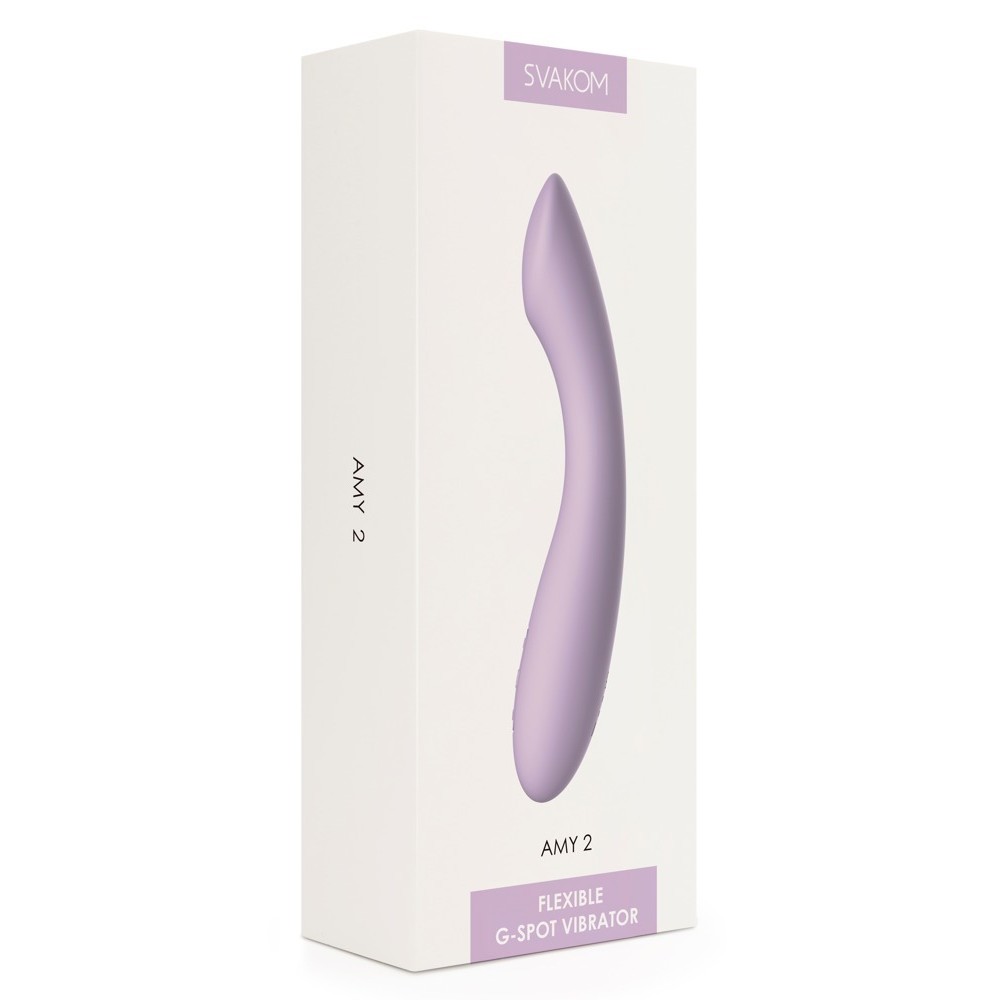 El vibrador Amy 2 de SVAKOM tiene una maravillosa forma curva ergonómica y también tiene una punta aplanada que es perfecta para la estimulación del punto de placer en el cuerpo. El vibrador de silicona flexible es aterciopelado y suave, lo que significa que es muy fácil de sostener y también se desliza sobre la piel y en las profundidades íntimas casi por sí mismo. Esto significa que el vibrador ligero pero intenso también se puede integrar fácilmente en la diversión en solitario o en pareja.