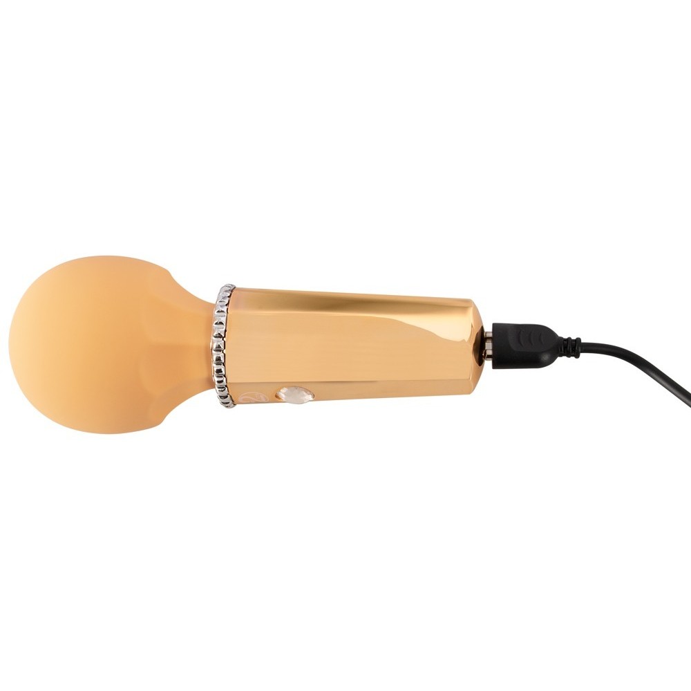 Pequeño y compacto masajeador Mini Wand Berry de You2Toys en un color frutal y fresco de helado y con un elegante aspecto metálico con una piedra brillante como botón de control. Con su cabezal de masaje flexible y sedoso, es adecuado tanto para masajes largos como para una estimulación precisa.