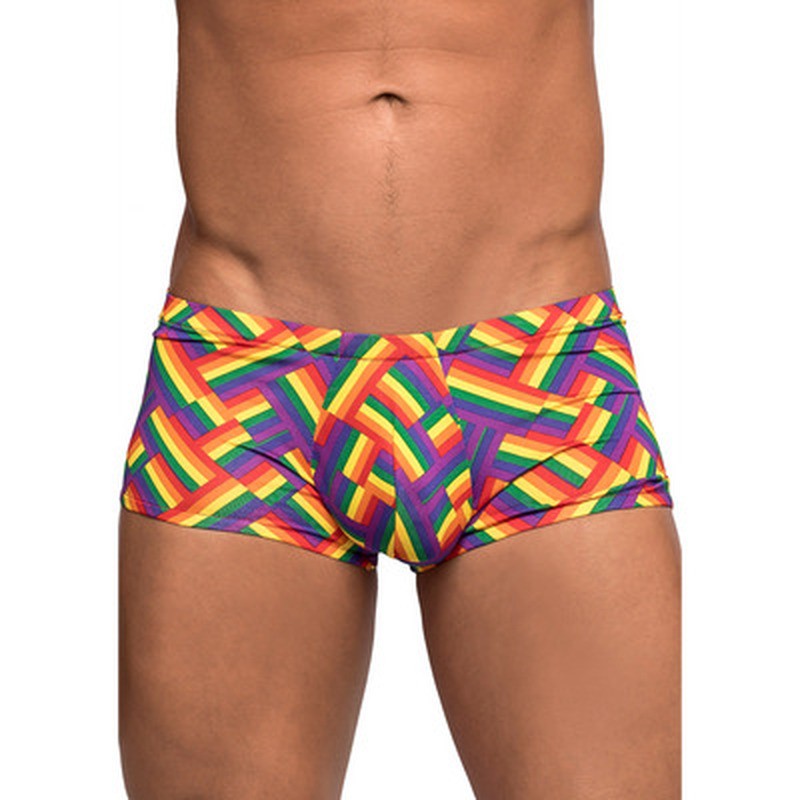 Mini short tanga arcoíris en tejido ligero y elástico que celebra la comodidad y la diversidad.