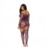 Catsuit de rejilla y encaje con hombros al descubierto, lencería sensual y elegante.