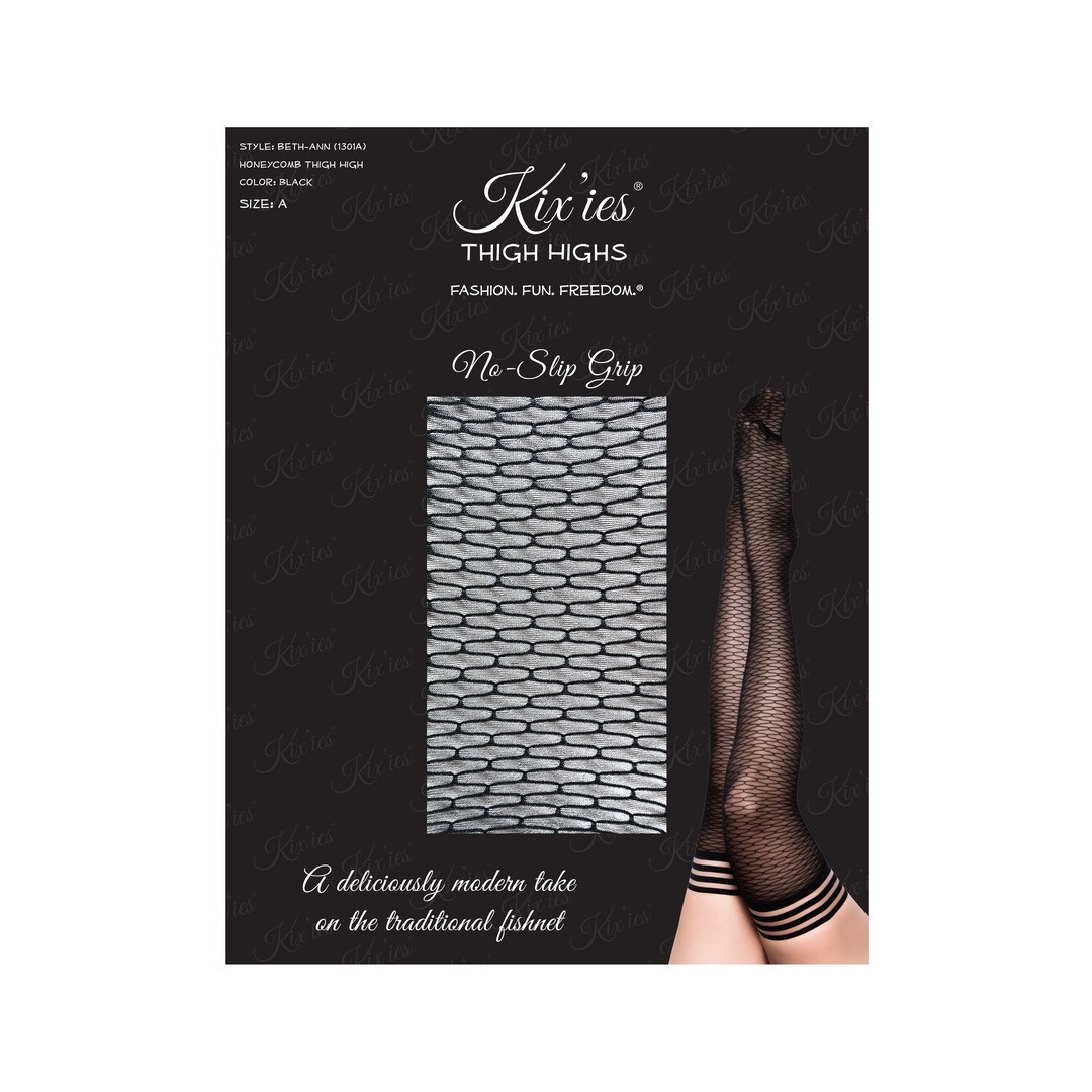 Medias de ligueros Kix'ies con diseño de panal, cómodas, antideslizantes y perfectas para un uso prolongado, con un estilo clásico y moderno.